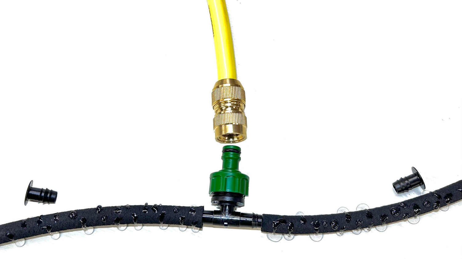 HoseSnap connectors which allows easy make / break connections between your garden hose and LeakyPipe.