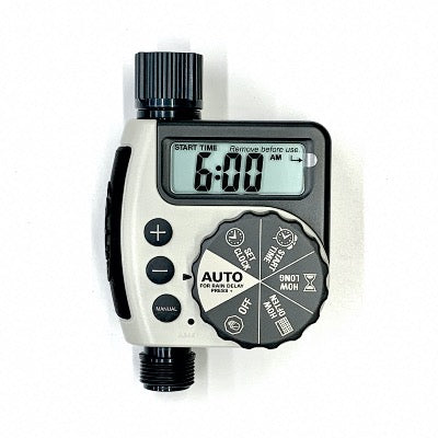 - Programmable by watering duration, time of day and day of week (eg twice per week)