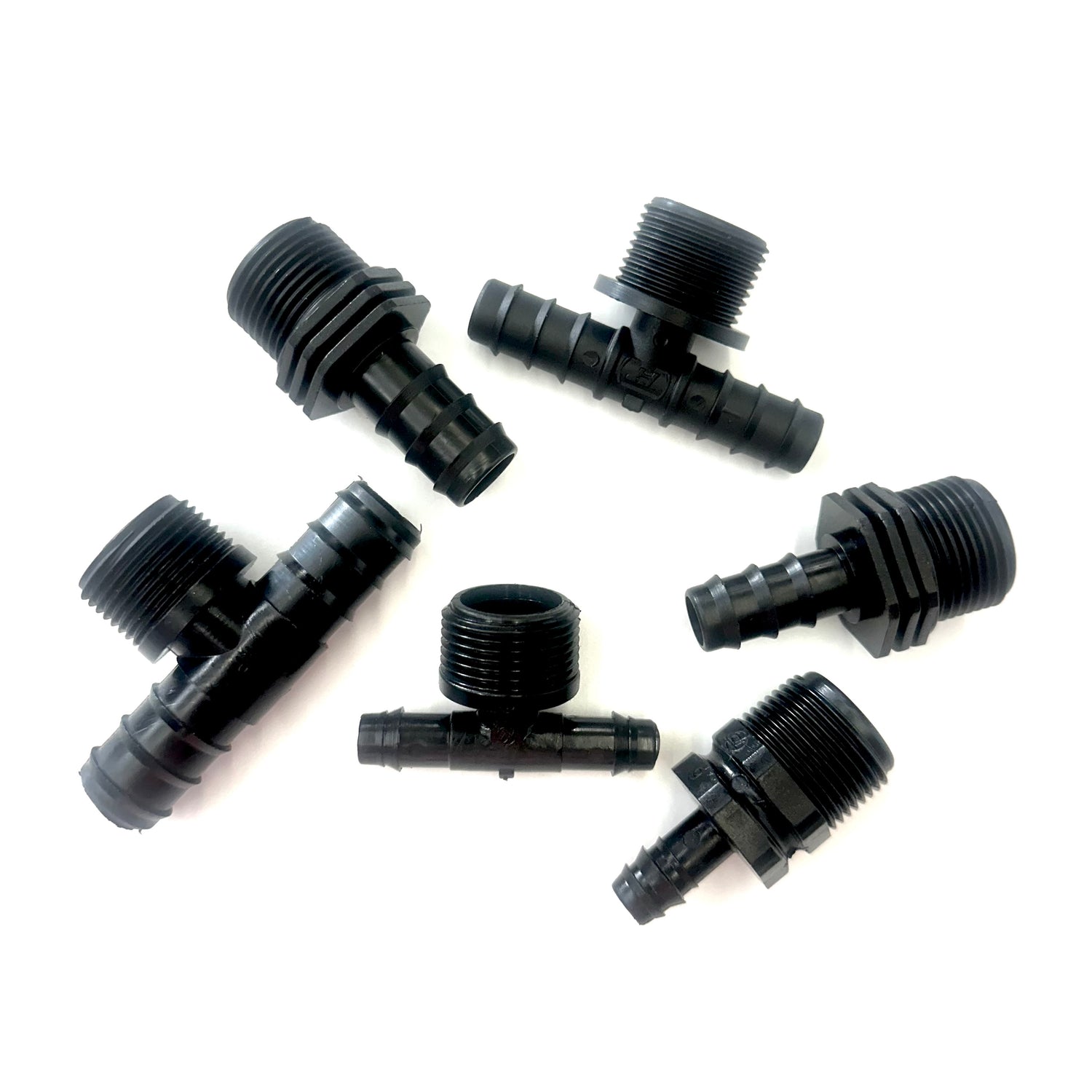 A selection pack of 12 barbed fittings which will enable a range of designs to be made up using LeakyPipe and 1/2" garden hose, 16mm or 20mm polytube supply pipe. This pack is suggested to be used with a 50m roll of LeakyPipe in terms of providing a good range and number of fittings that you may want for setting up an irrigation system. If you have 100m roll of LeakyPipe, consider a large selection pack.